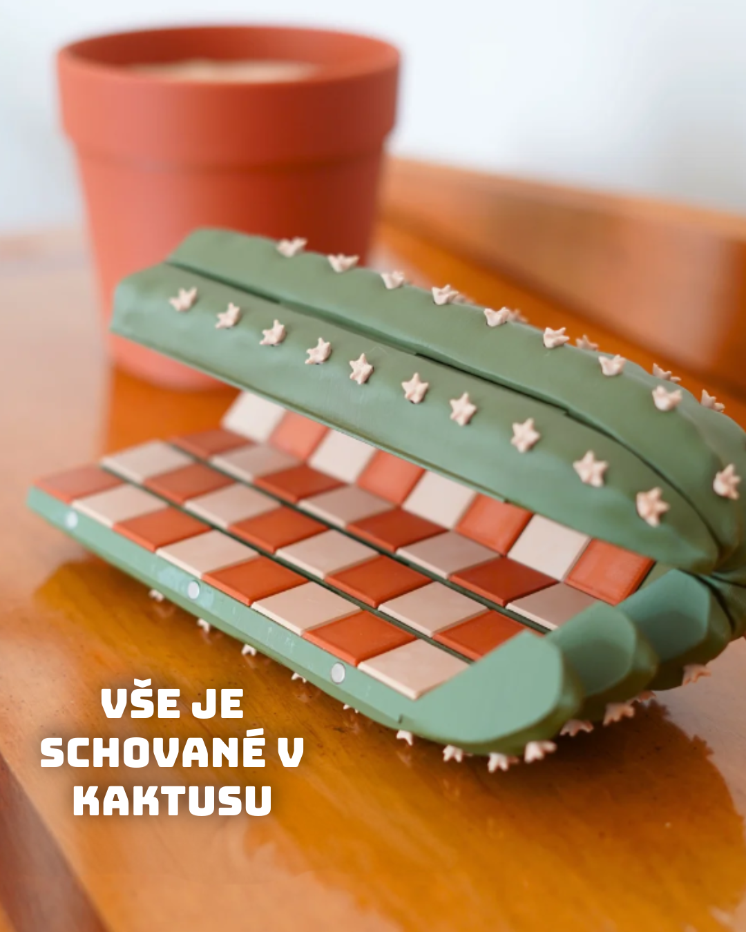 Šachy ještě nikdy nevypadaly tak zábavně! Tahle sada spojuje vše, co miluješ – originální design, promyšlené detaily a hravost. Vše je inspirované kaktusy, a přitom plně funkční: