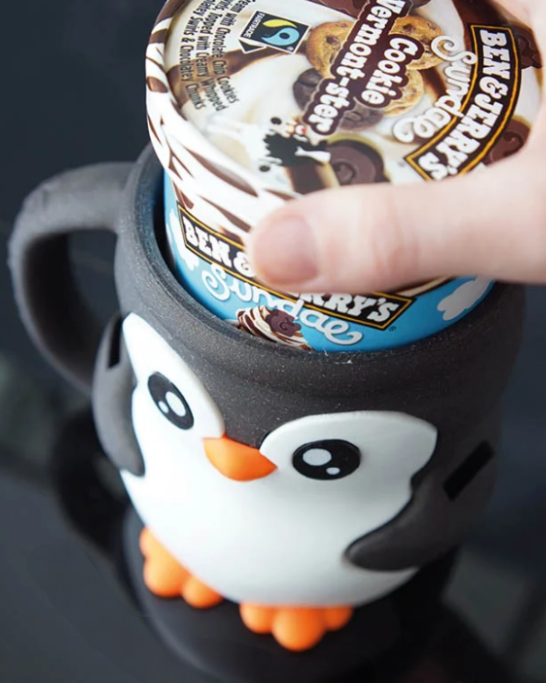 Užij si zmrzlinu bez studených rukou! Pebbles je roztomilý tučňák navržený tak, aby udržel tvůj kelímek se zmrzlinou v chladu, zatímco tvoje ruce zůstanou v teple a suchu. Hodí se na většinu standardních kelímků (např. Ben & Jerry’s) a kromě funkčnosti překvapí i několika zábavnými detaily.